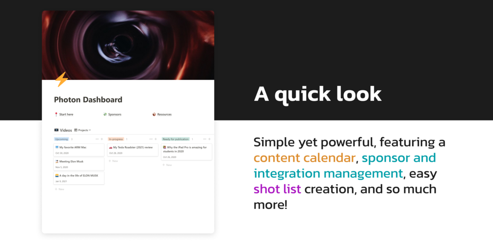 Photon - an advanced YouTube management Notion template that you can duplicate into your workspace